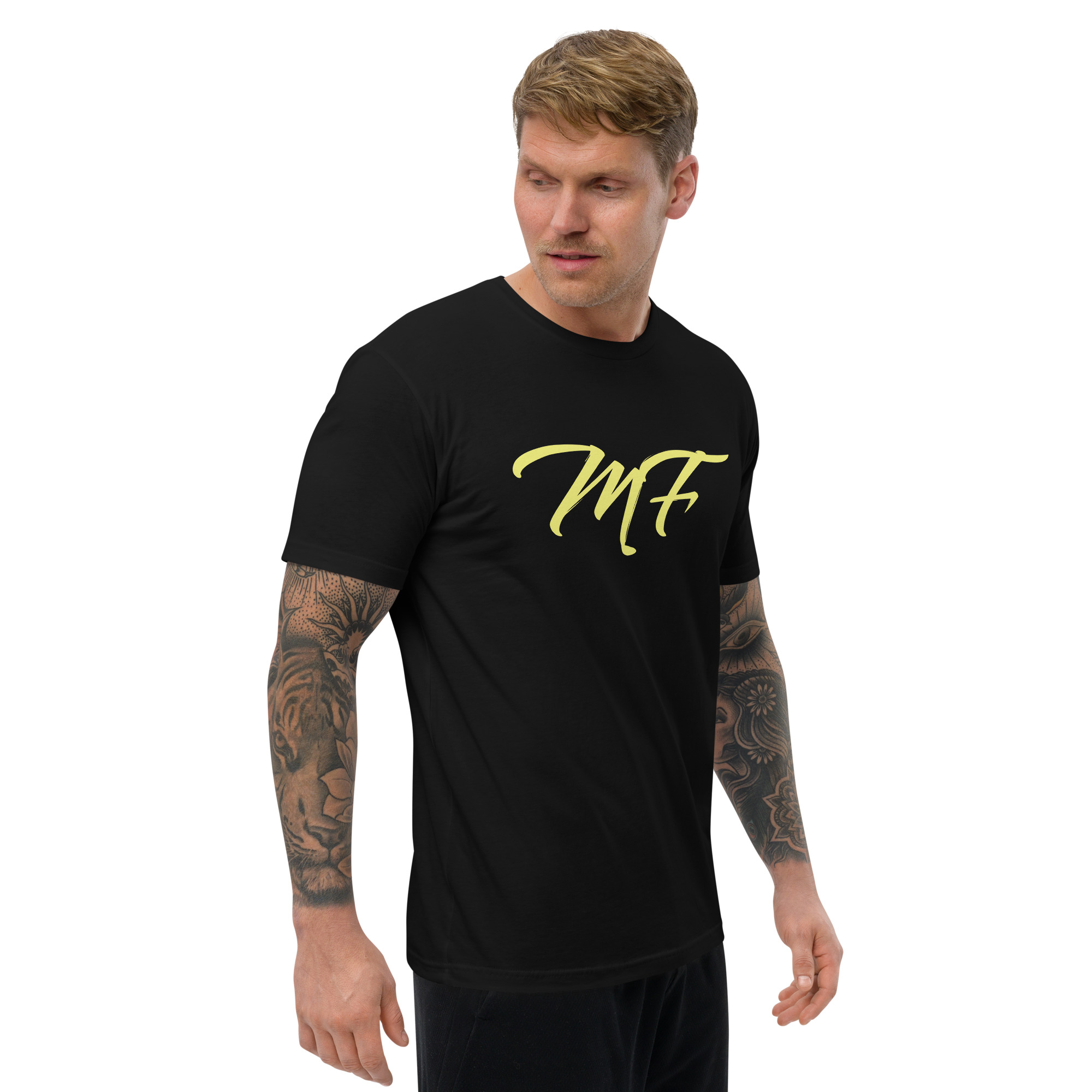 Be the first to review “Black Yellow MF Fitted Short Sleeve T-shirt”