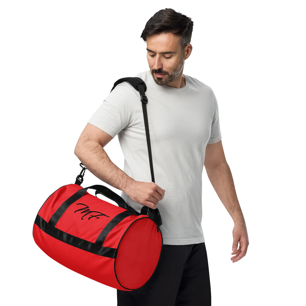 Ready to get your fitness on? Add some punch to pumping iron with this all-over print gym bag. Made from 100% polyester and sturdy, water-resistant fabric, this bag is fun meets function. And it’s got pockets!